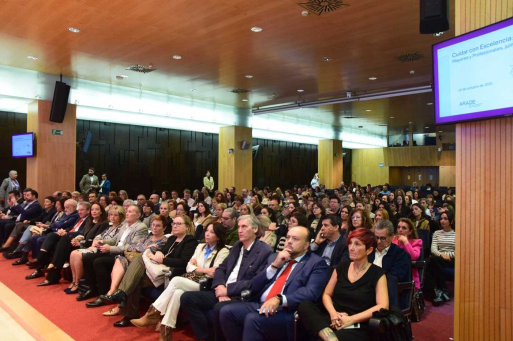Tras la inauguración la gerente de ARADE, Paquita Morata, ha repasado todo el trabajo llevado a cabo a lo largo del año recordando que ARADE agrupa a 118 entidades que gestionan más de 8.500 plazas entre residencias, centros de día, teleasistencia, ayuda a domicilio y atención en pisos tutelados en Aragón y que en 2025 se ha impulsado una certificación en el Modelo ACP avalada por CEOMA y UNIR, siendo pionera Aragón con cuatro residencias de Zaragoza y Huesca ya acreditadas bajo este Modelo de Atención Centrada en la Persona. Además, se ha realizado un importante esfuerzo formativo y de consultoría para que una buena parte de los asociados implanten en sus centros dicho modelo facilitando para ello documentación, protocolos, vídeos formativos, etc que se encuentran a disposición de los asociados en la zona privada de la web de ARADE y que les facilita llevar a cabo una gestión que respete la dignidad, la autonomía y la libertad de sus usuarios para lograr que sean más felices.