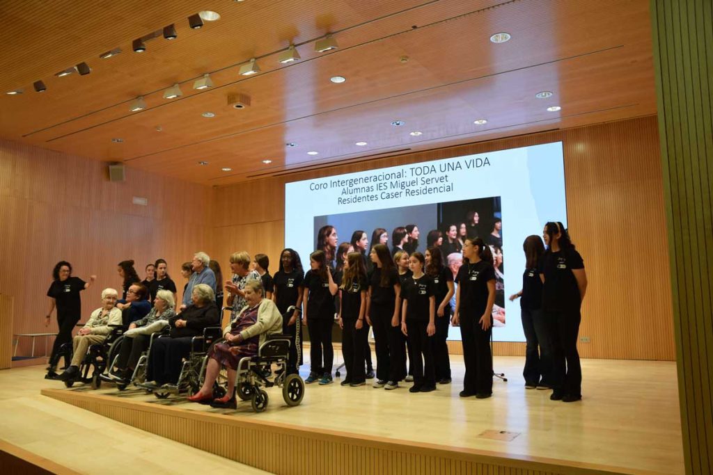Otro momento emocionante durante el acto ha llegado con la participación del coro intergeneracional TODA UNA VIDA formado por residentes de Caser Residencial y alumnos de IES Miguel Servet; han interpretado dos canciones tradicionales que ponen de manifiesto la unión de la juventud con nuestros residentes poniendo en valor su experiencia de vida.