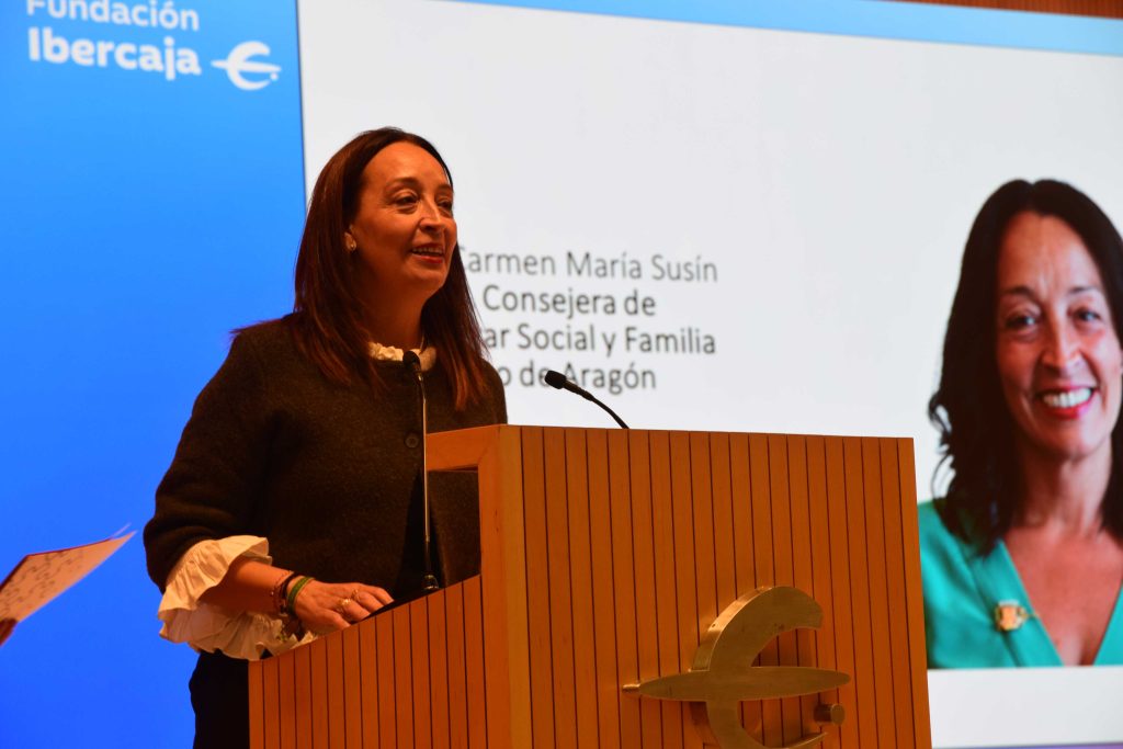Nos han acompañado cerca de 300 personas, entre autoridades, representantes públicos, colaboradores y profesionales del cuidado. Dña. Carmen María Susín, nuestra Consejera de Bienestar Social y Familia ha inaugurado el acto. La consejera ha señalado que la prioridad de Aragón, con respecto a la atención a las personas mayores y dependientes, es impulsar iniciativas que eliminan barreras y que humanizan los cuidados. Así mismo, ha subrayado que esto es posible “gracias a la colaboración cercana y directa con quienes trabajan en las residencias y los centros de día”. Además, ha animado a “entender los cuidados desde el respeto a la dignidad, la autonomía y la libertad de elección de cada persona”.